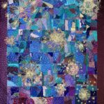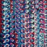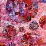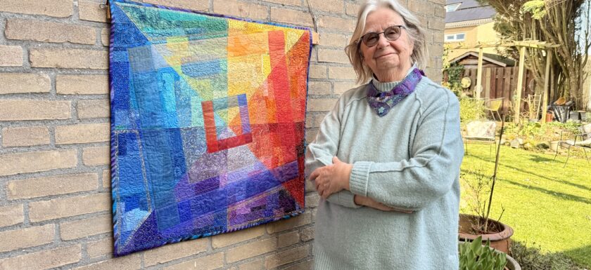 Ik werk met textiel o.a. katoen, zijde, organza en allerlei soorten vezels. Het heeft mijn voorkeur om abstract te werken omdat het spelen met vormen en kleuren mij het meeste boeit. Het textielwerk bestaat uit 3 lagen en wordt intensief doorgestikt met de naaimachine waardoor interessante structuren ontstaan en het werk een heel eigen karakter krijgt.