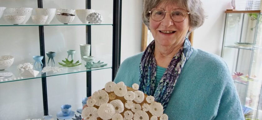In porselein zoekt zij de grenzen op van de kwetsbaarheid van deze bijzondere klei-soort. Haar werkstukken zijn uniek van vorm en kleur. Ook in haar omgang met glas, deels gekleurd deels transparant, is zij opzoek naar nieuwe mogelijkheden en toepassingen die dit materiaal biedt. In haar werkstukken van textiel is dezelfde passie voor experimenteren terug te vinden.